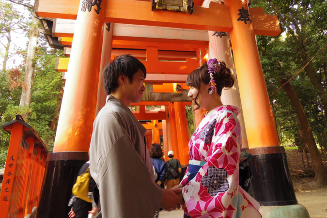 京都の伏見稲荷駅近くの着物レンタル 京都愛和服 伏見稲荷店です。